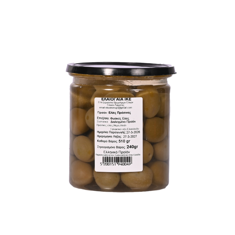 Πράσινες Ελιές Χαλκιδικής 450ml υψηλής ποιότητας από την Elaiogaia. Παραδοσιακή ελληνική γεύση, προσεκτική επιλογή καρπών και ιδανική συσκευασία για καθημερινή κατανάλωση ή επαγγελματική χρήση.