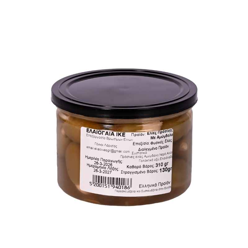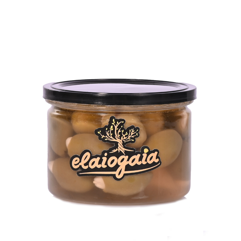 Πράσινες Ελιές με Αμύγδαλο 300ml υψηλής ποιότητας από την Elaiogaia. Παραδοσιακή ελληνική γεύση, προσεκτική επιλογή καρπών και ιδανική συσκευασία για καθημερινή κατανάλωση ή επαγγελματική χρήση.