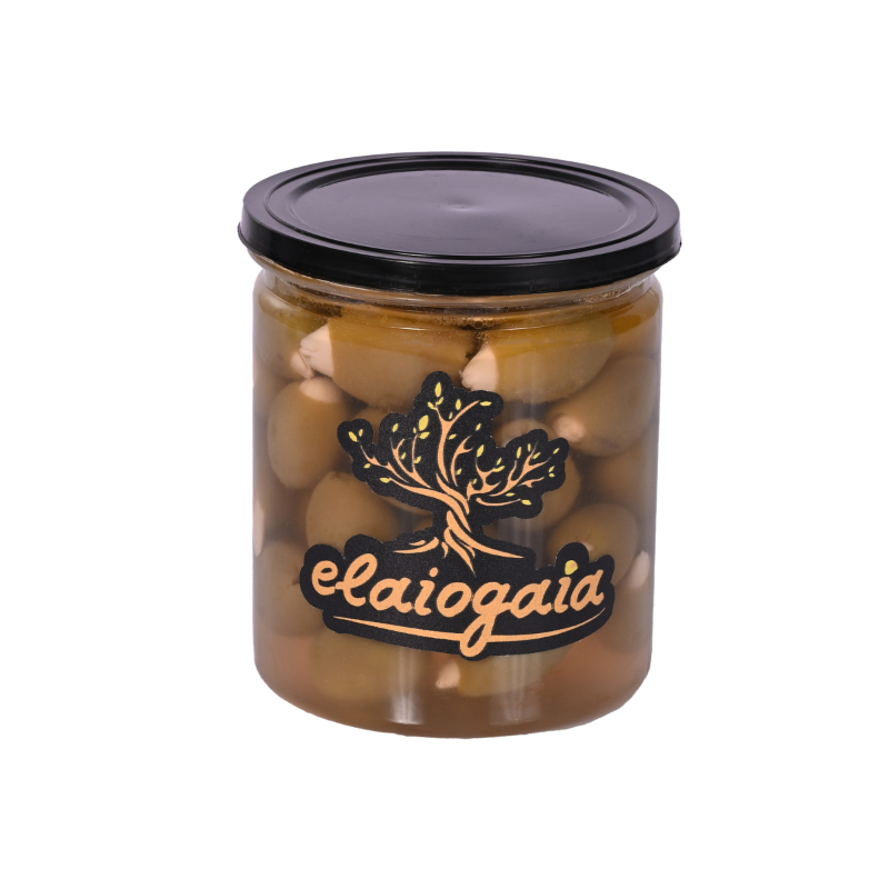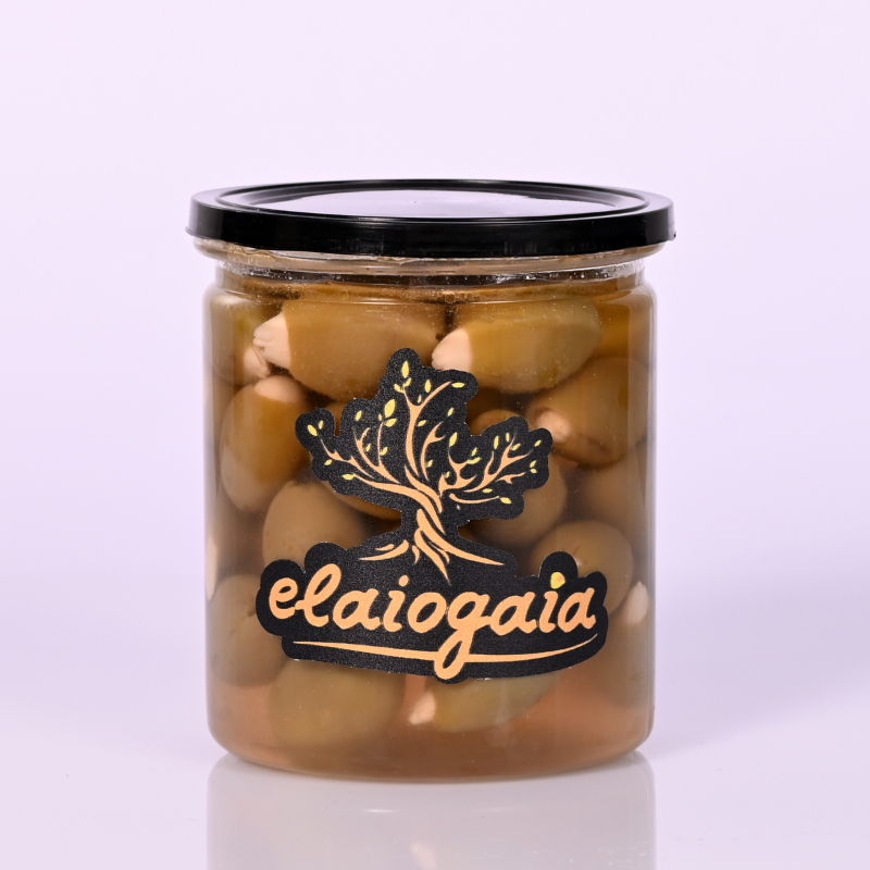Πράσινες Ελιές με Αμύγδαλο 450ml υψηλής ποιότητας από την Elaiogaia. Παραδοσιακή ελληνική γεύση, προσεκτική επιλογή καρπών και ιδανική συσκευασία για καθημερινή κατανάλωση ή επαγγελματική χρήση.