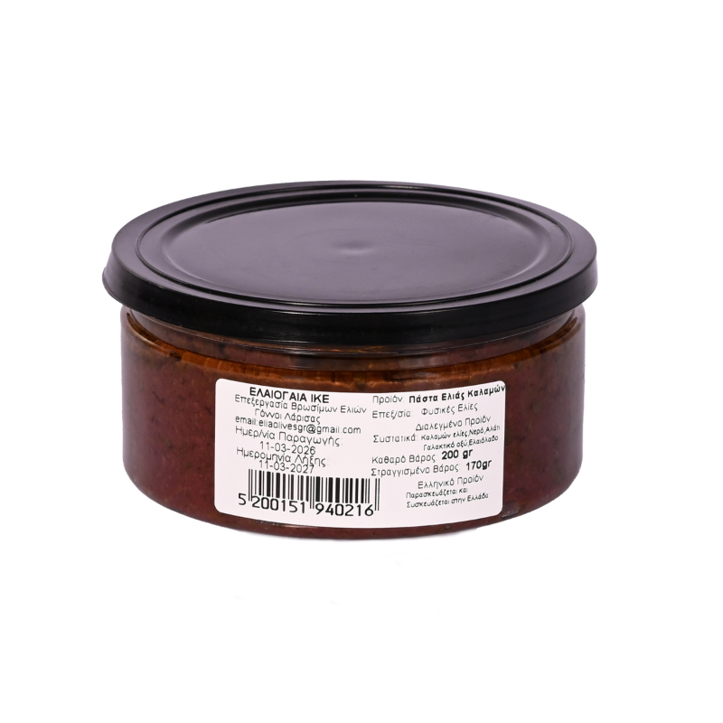 Πάστα Ελιάς Καλαμών 200ml υψηλής ποιότητας από την Elaiogaia. Παραδοσιακή ελληνική γεύση, προσεκτική επιλογή καρπών και ιδανική συσκευασία για καθημερινή κατανάλωση ή επαγγελματική χρήση.